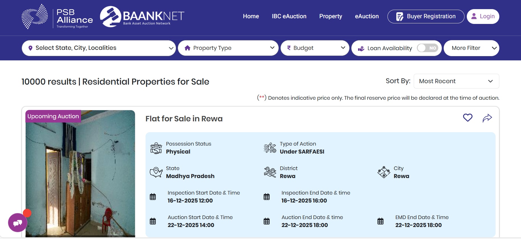 It represents property that has to be auctioned on the website