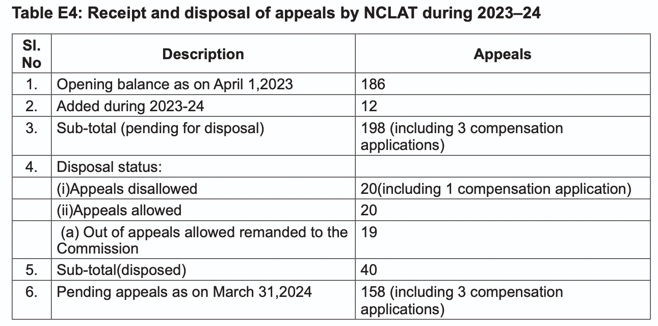 Receipt and disposal of appeals by NCLAT during 2023–24