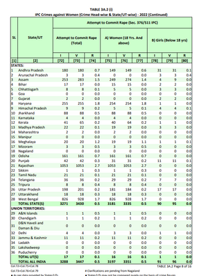 - ↑ Ministry of Statistics and Programme Implementation (MoSPI). (2023). State-wise and age-wise distribution of rape victims – 2022