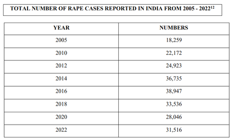 - ↑ Mahapatra, R., & Das, S. (2022). Sexual violence in India: An epidemiological perspective. BMC Public Health, 22, 13182